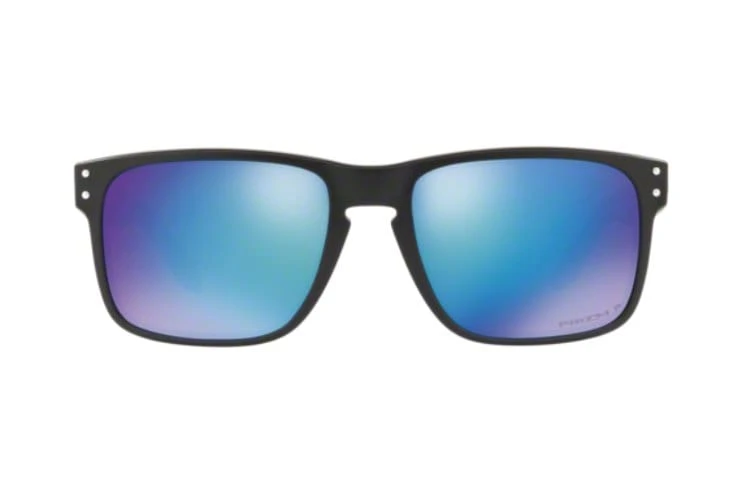 Oakley Sonnenbrille Holbrook OO 9102 F0 in Matt-Schwarz mit polarisierenden Gläsern in Blau und 100% UV-Schutz.