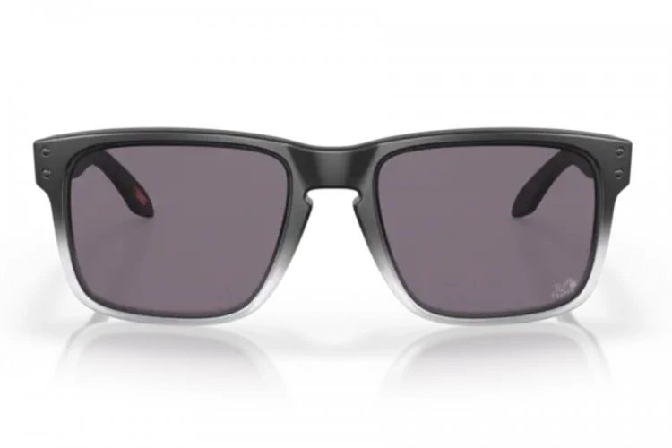 Oakley Sonnenbrille Holbrook OO 9102 W1 in Schwarz matt verblassend mit grauen, Prizm Gläsern und 100% UV-Schutz.