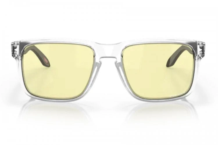 Oakley Sonnenbrille Holbrook OO 9102 X2 in Transparent/Matt Schwarz mit gelben, leicht verspiegelten, Prizm Gläsern und 100% UV-Schutz.