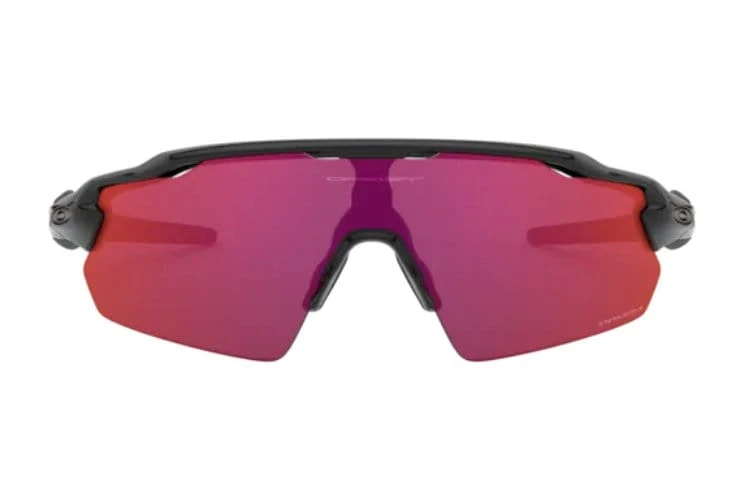 Oakley Sonnenbrille Radar EV Pitch OO 9211 17 in der Farbe schwarz glänzend mit orang-rot-violetten Gläsern.
